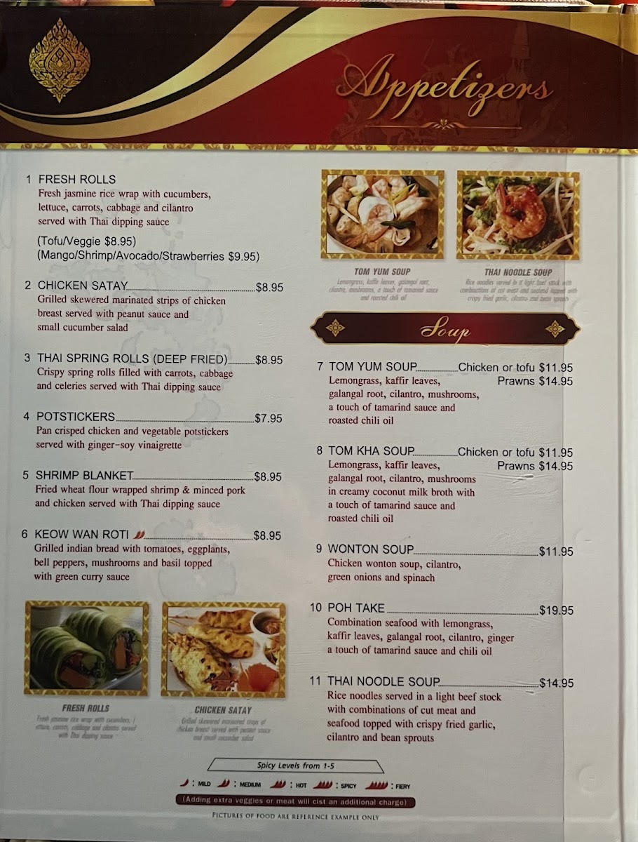 Fried spring roll paper wrapped shrimp & minced chicken served with sweet Thai dipping sauce.